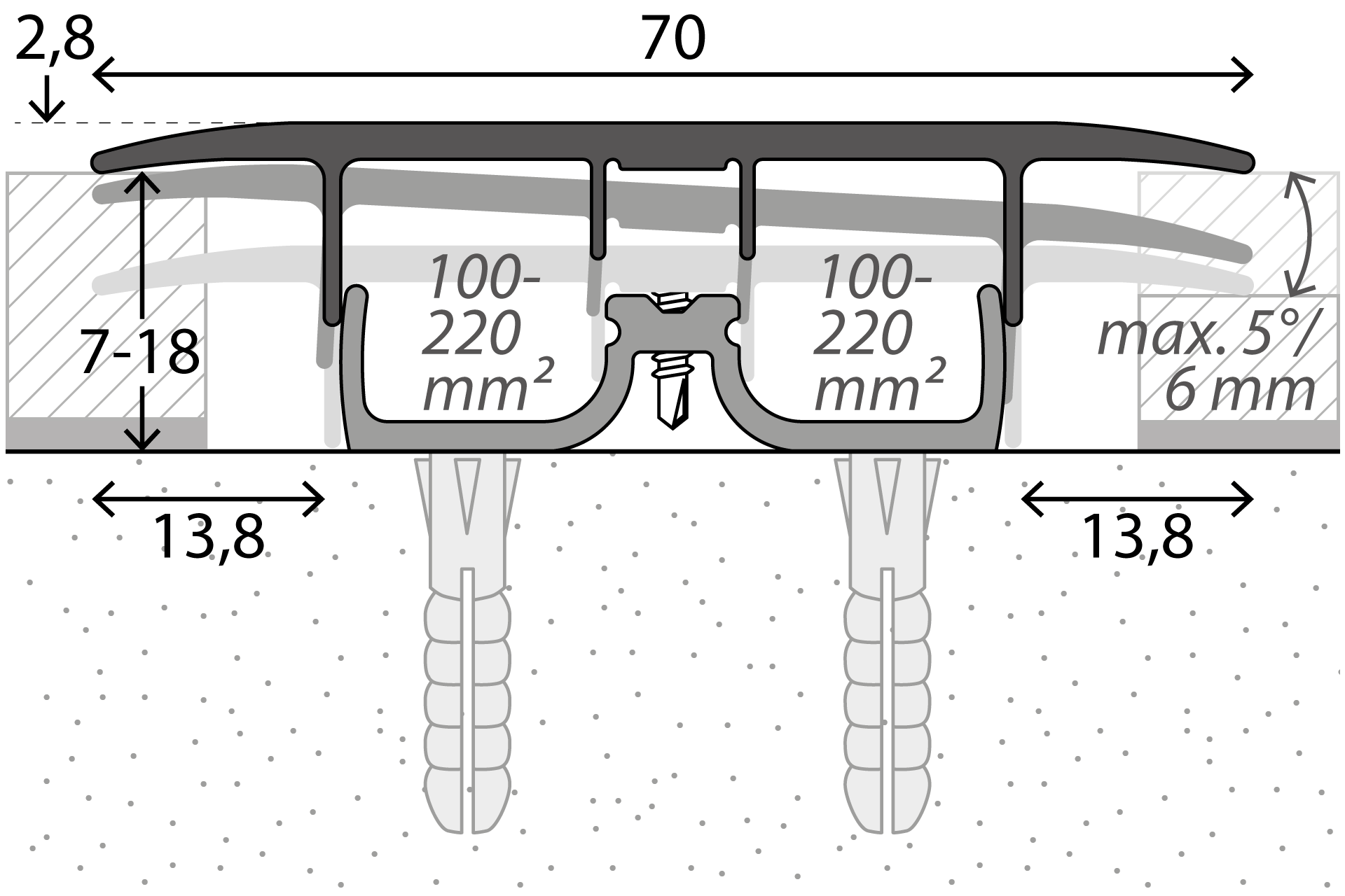 Die Profile decken Aufbauhöhen von 6 mm bis 13 mm bzw. 15 mm ab. Mit Erhöhungsblöcken sind sie sogar bis 18 mm einsetzbar.