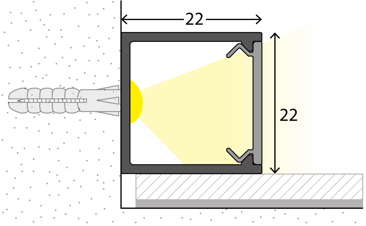Unsere LED Sockelleisten lassen sich im Boden-, Wand- oder Deckenbereich bequem verkleben oder verschrauben. Durch ein Clipsystem lässt sich der Diffuser einfach abnehmen, so dass ein einfacher Zugang zum LED Streifen gewährleistet wird. Mit unseren Endstücken für die LED Kanäle sorgen Sie für einen sauberen Abschluss der leuchtenden Sockelleisteninstallation. Die universellen Endstücke fungieren zusätzlich als Innen- und Außenecke für die LED Sockelleisten.