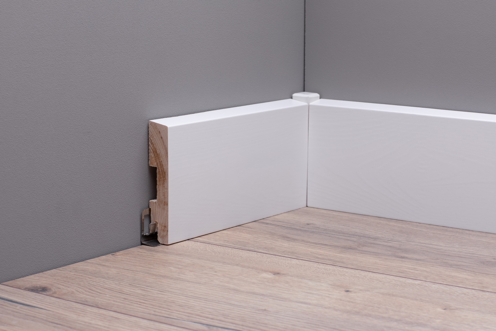 Durch das praktische ClipSystem lassen sich die Sockelleisten schnell und einfach an der Wand montieren.