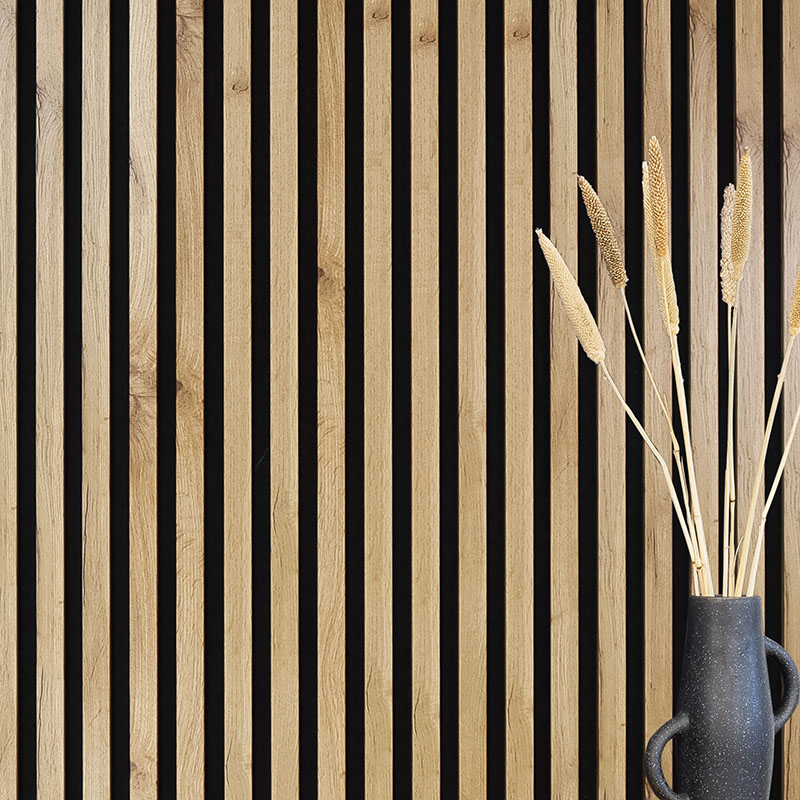 Lamellenleisten haben ähnlich positive Auswirkungen auf das akustische Raumklima wie Akustikpaneele und tragen somit zu einer gemütlichen Atmosphäre und einer geringeren Geräuschentwicklung bei. Diese Vorteile gehen allerdings mit einem leicht erhöhten Aufwand einher: Die Holzlamellen werden einzeln von Hand zu einer Lamellenwand montiert, während Sie ein Akustikpaneel im Ganzen verwenden können.