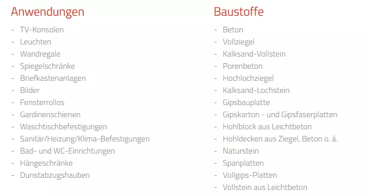 - Grundkörper aus hochwertigem Nylon aktiviert je nach Baustoff automatisch das optimale Funktionsprinzip für dauerhafte und sichere Befestigung.