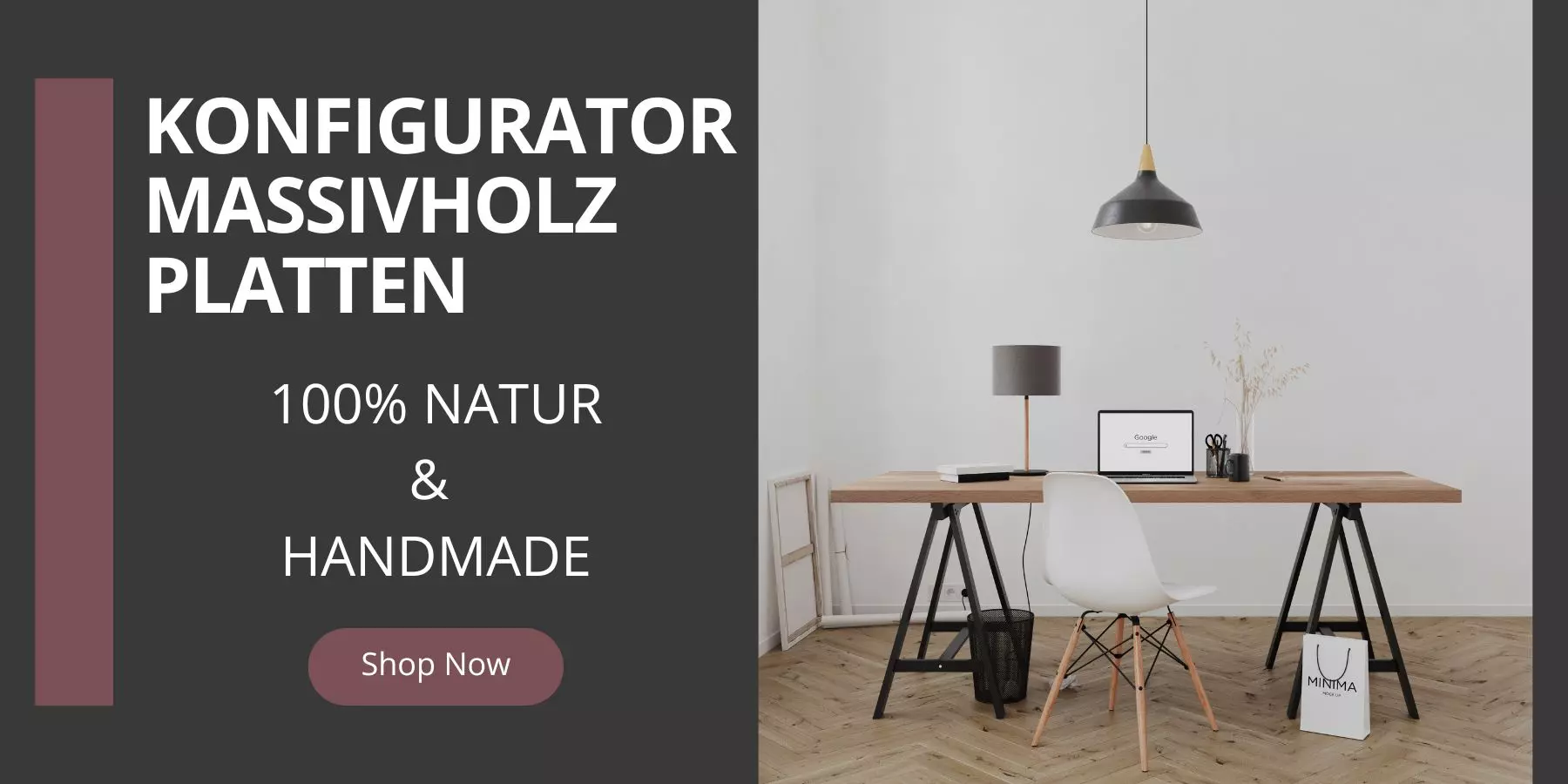 Gestalten Sie Ihre Massivholzplatten ganz nach Ihren Vorstellungen mit unserem benutzerfreundlichen Massivholzplatten Konfigurator. Ob für Möbelbau, Arbeitsplatten, Regale oder dekorative Wandverkleidungen - mit unserem Konfigurator erstellen Sie Holzplatten in gewünschter Größe, Holzart und Ausführung.