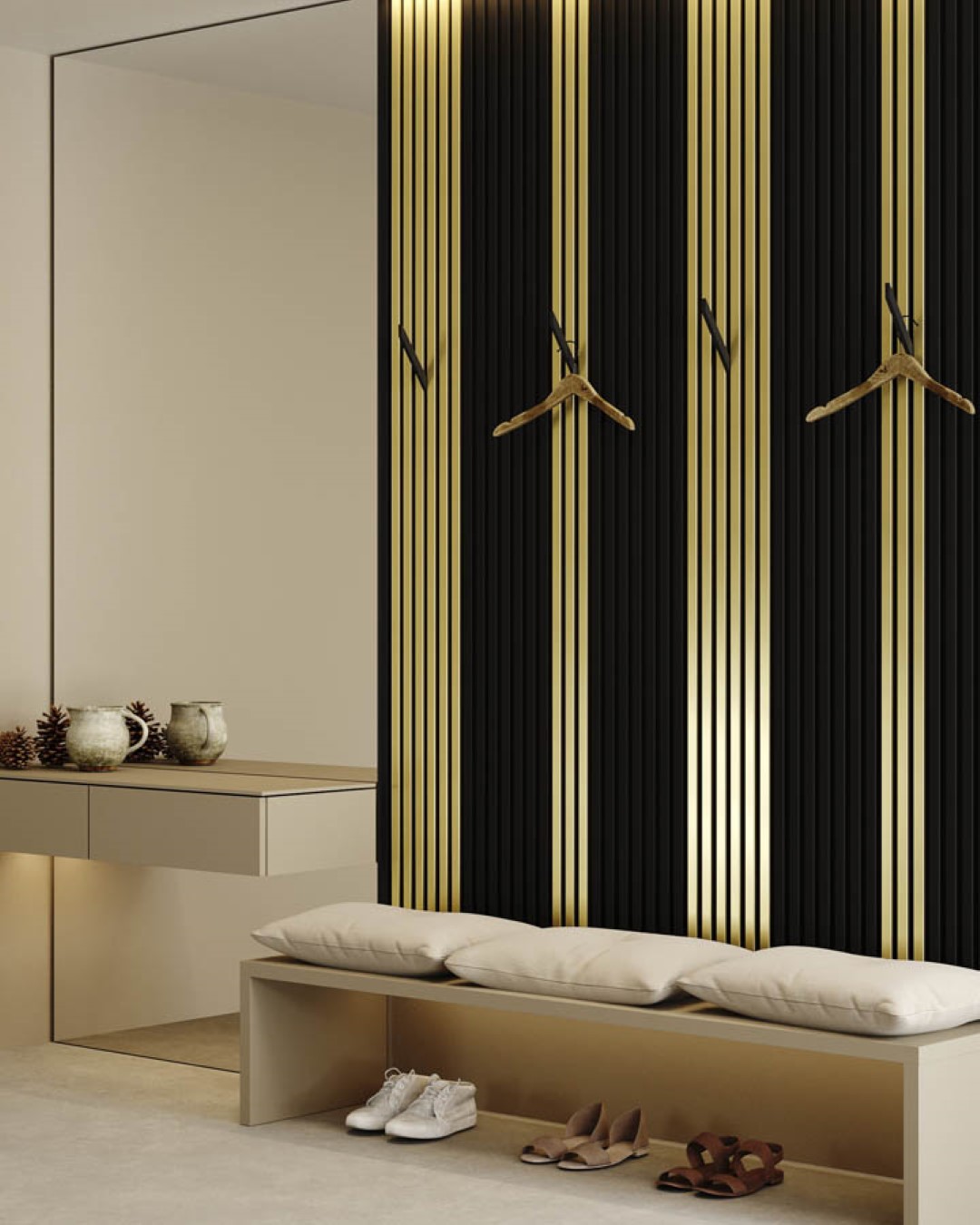 - Moderne Lamellenwand-Optik für mehr Tiefe und Struktur
