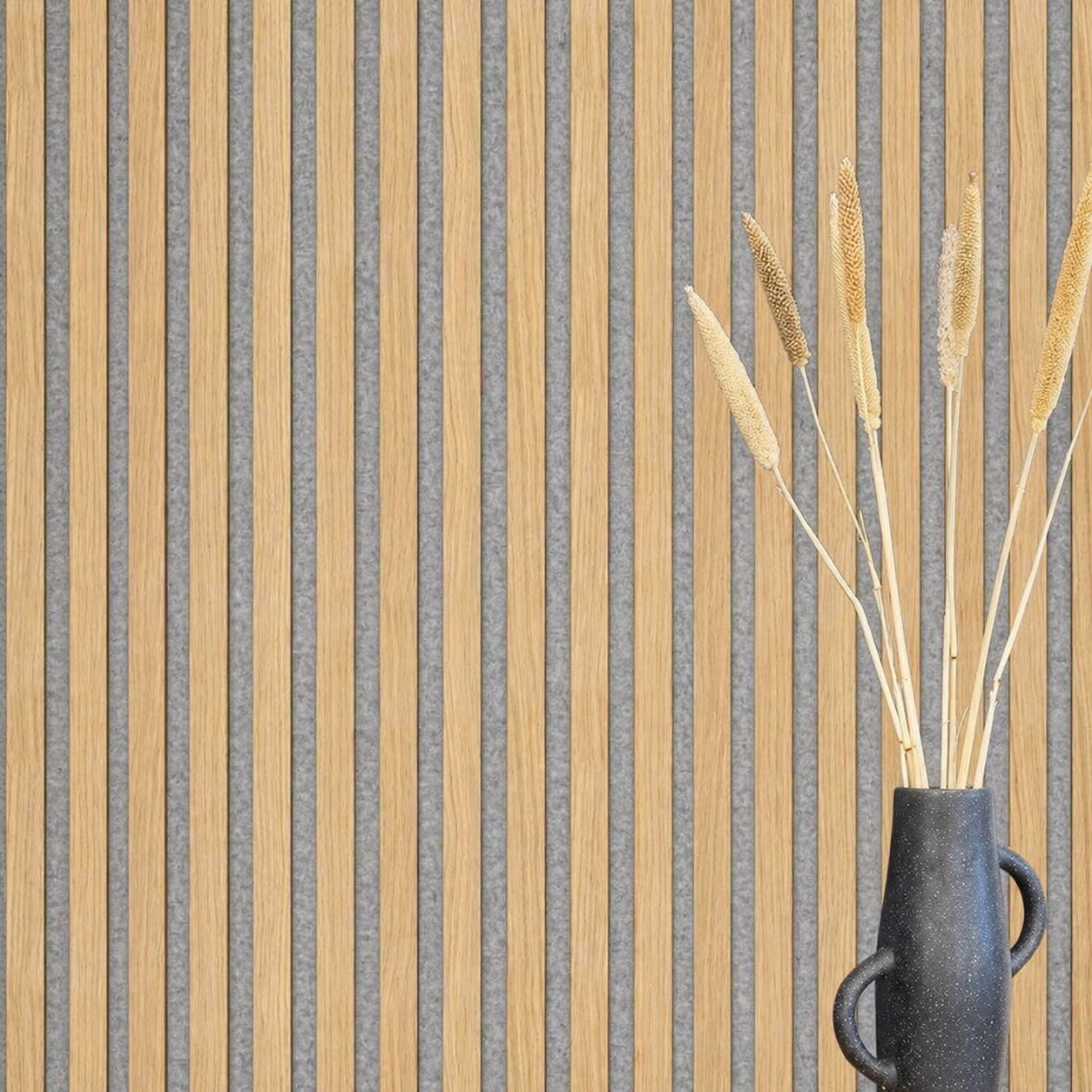 Acoustic+ Premium Akustikpaneel 2600 x 400 mm Echtholzfurnier Eiche Lack - Akustikfilz Grau
