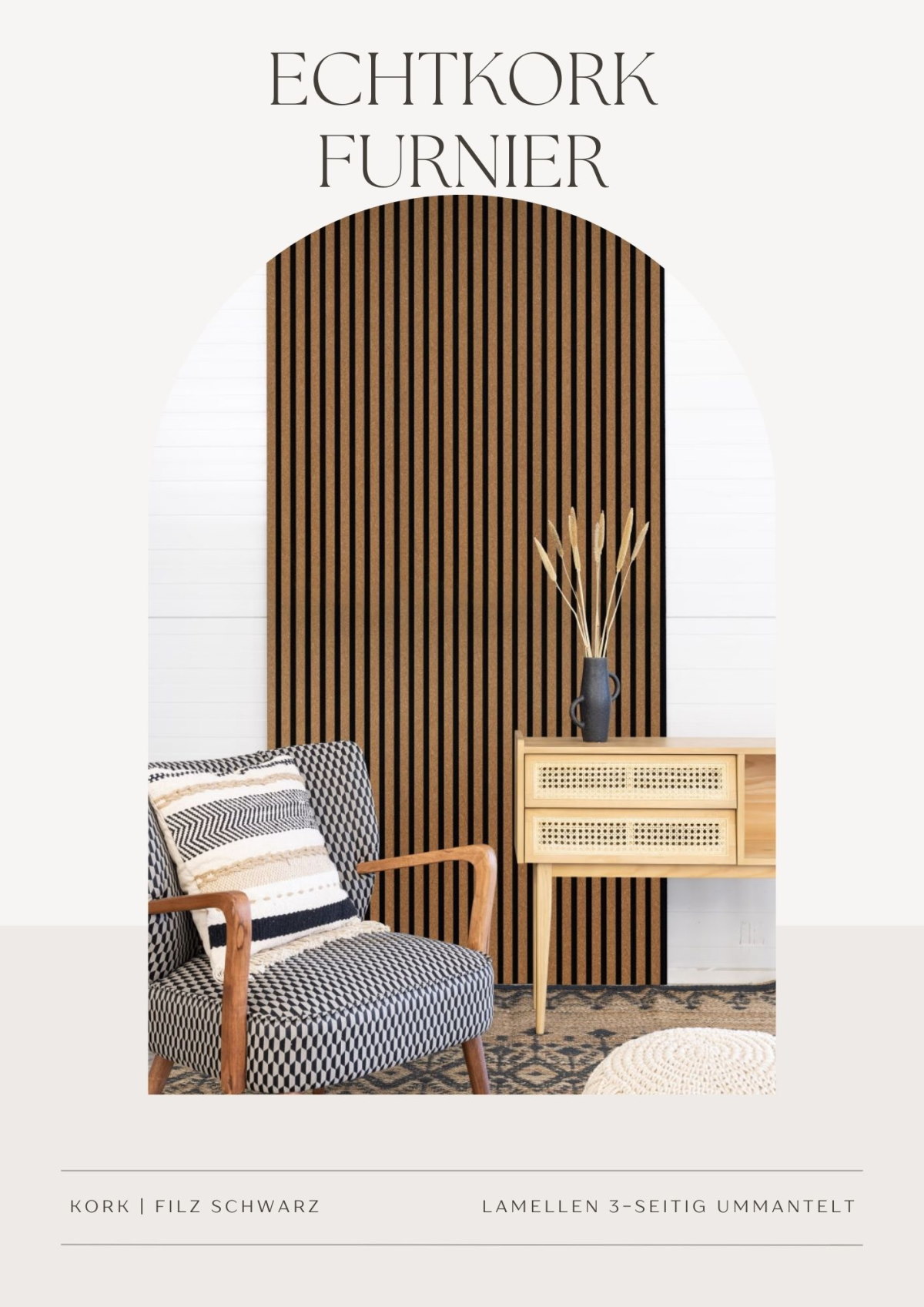 - 12mm starke Lamellen aus MDF mit Qualitäts-Dekorkaschierung in Kork
