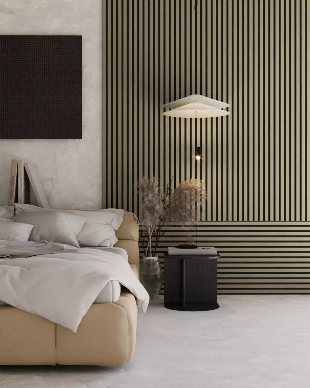 - Exklusives Design: Jede Oberfläche unserer Paneele ist sorgfältig veredelt, um ein luxuriöses und ansprechendes Raumambiente zu schaffen. Werten Sie Ihre Räume mit zeitlosen und edlen Designs auf, die nicht nur gut aussehen, sondern auch die Akustik optimieren.