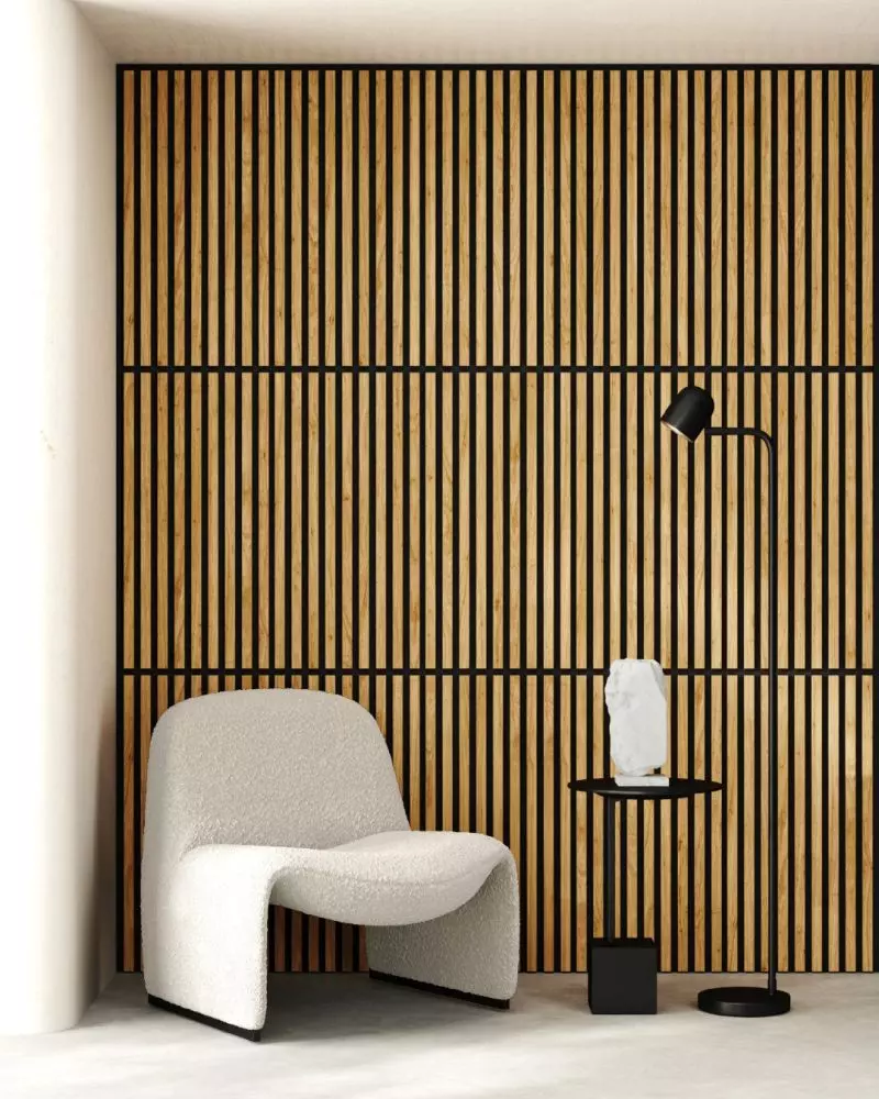 - Akustikpaneele mit Schattenfuge - Lamellenwand als Wand- und Deckenverkleidung