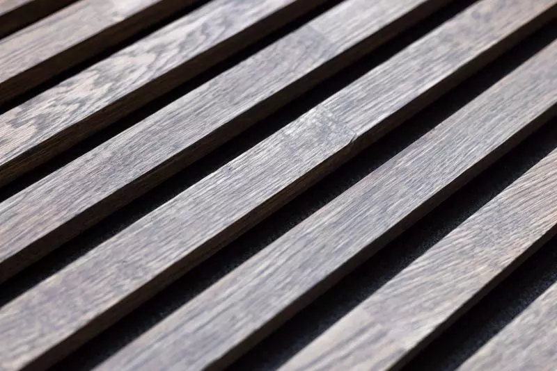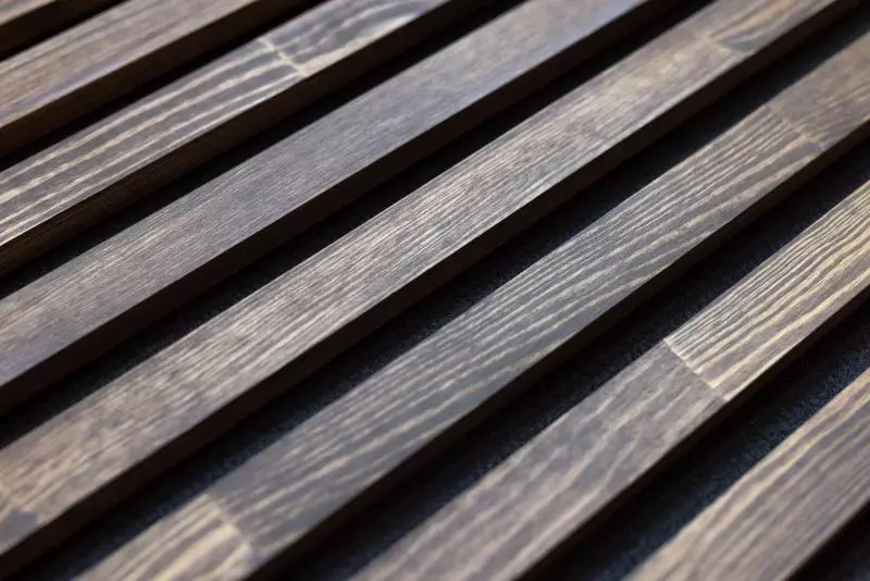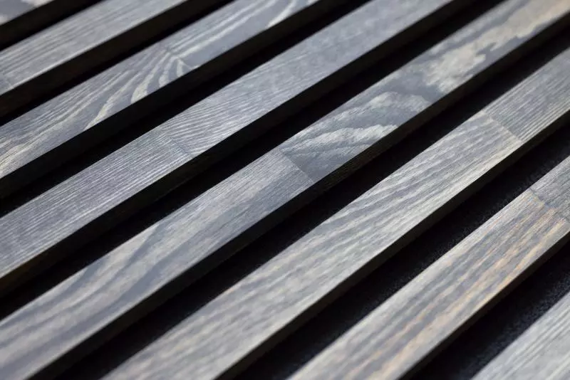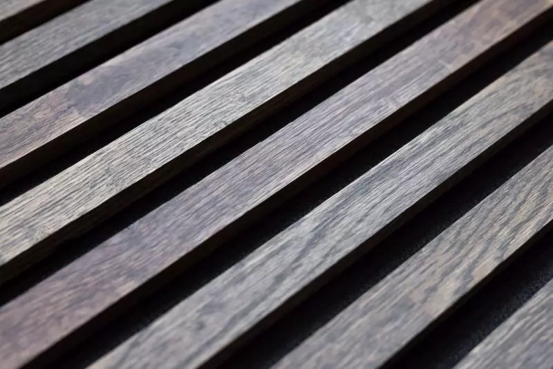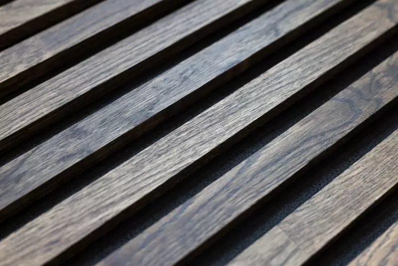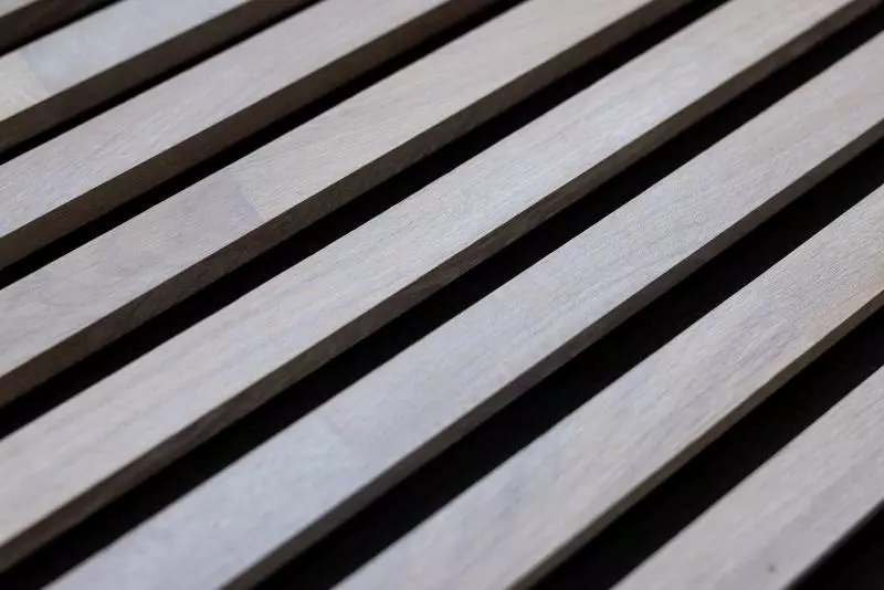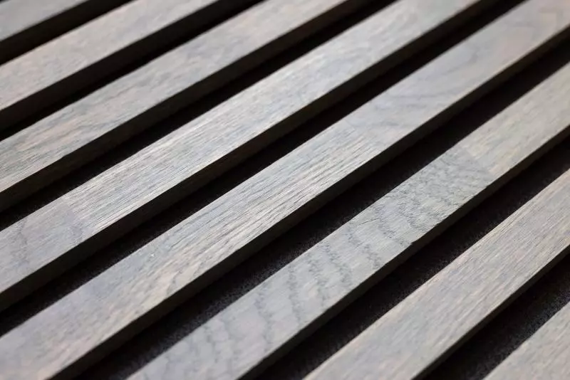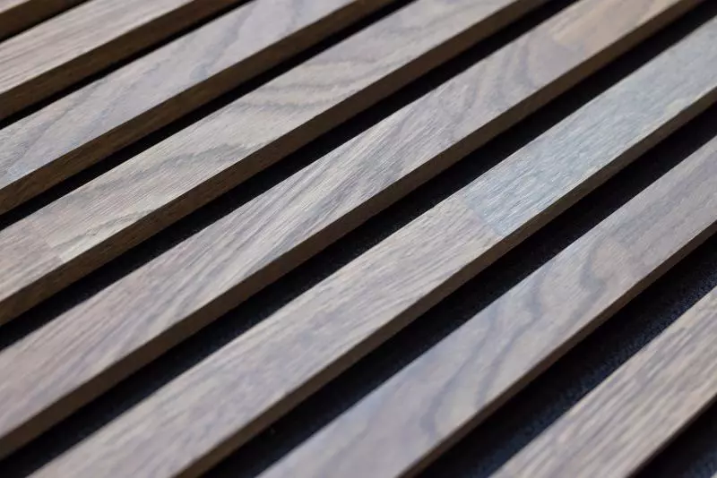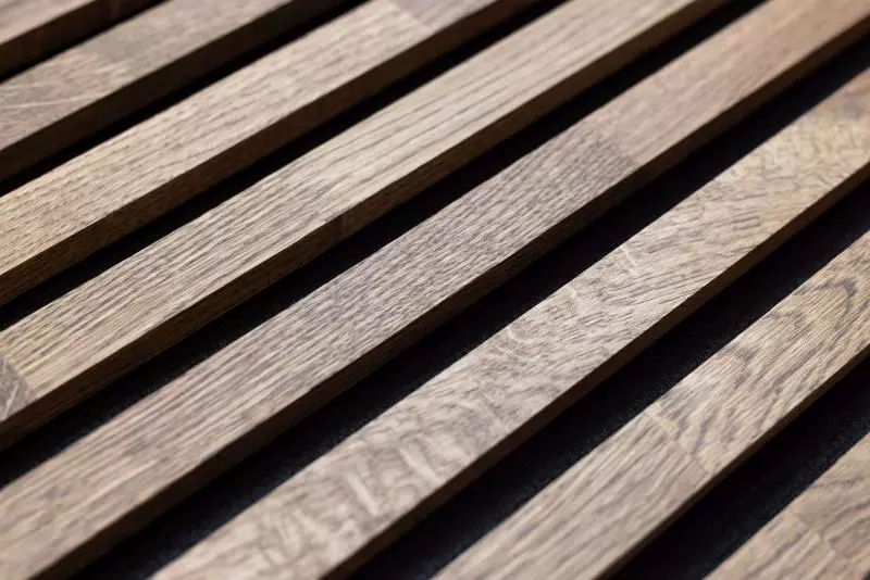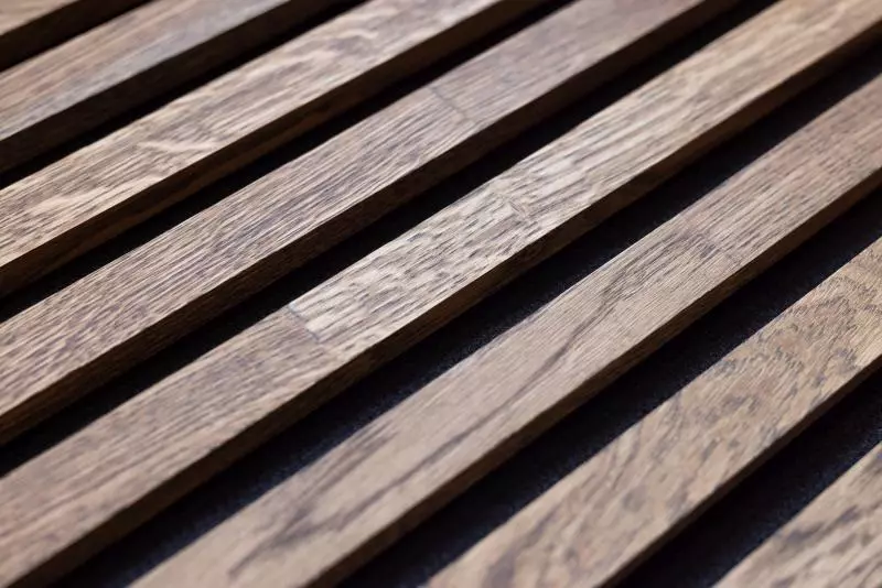 Die Oberflächen der Lamellen werden sorgfältig mit hochwertigen Ölen bearbeitet, verfügbar in verschiedenen Farbvarianten, um die natürliche Schönheit des Holzes zu betonen und gleichzeitig eine zusätzliche Schutzschicht zu bieten.