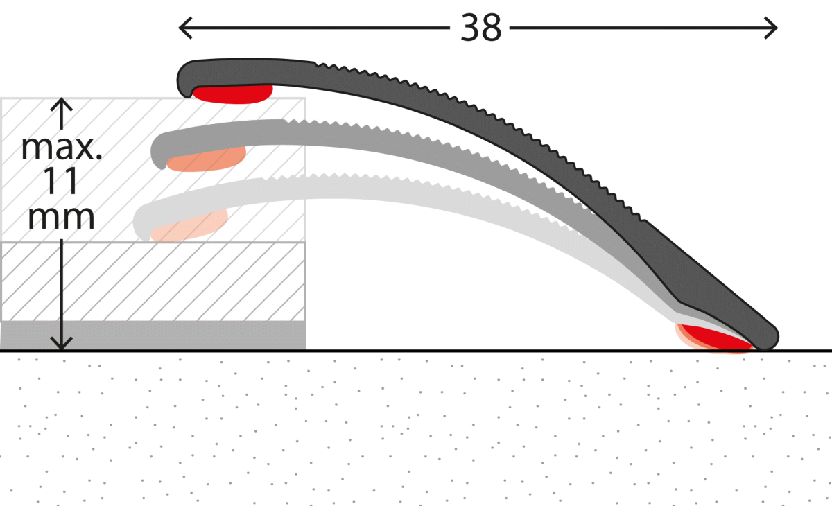 Das Anpassungsprofil auf Aluminium ist bei Höhenunterscheiden bis zu 11mm einfach fast überall perfekt einsetzbar.