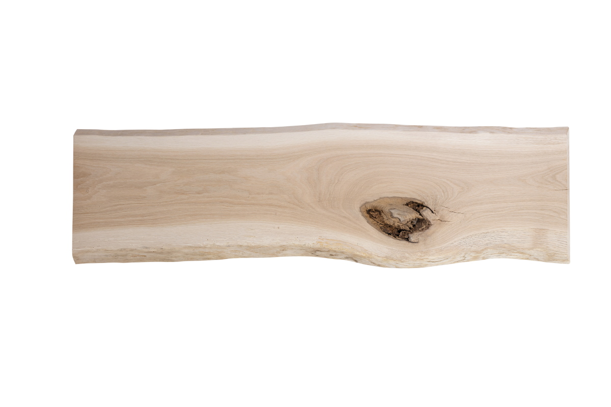 Das Eichenholz ist technisch getrocknet auf ca. 8-12% und damit frei von Ungeziefer und Schädlingen. Die Massivholzplatten sind einseitig abgerichtet. Die nach unten ausfallende Baumkanten-Seite ist gehobelt und geschliffen. Die Baumkanten sind entrindet und überschliffen.