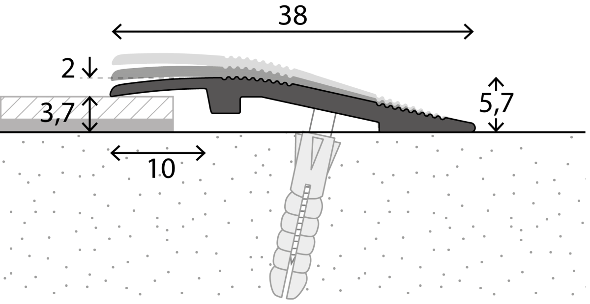 Das Profil wird mit dem Untergrund fest durch Verschrauben verbunden.