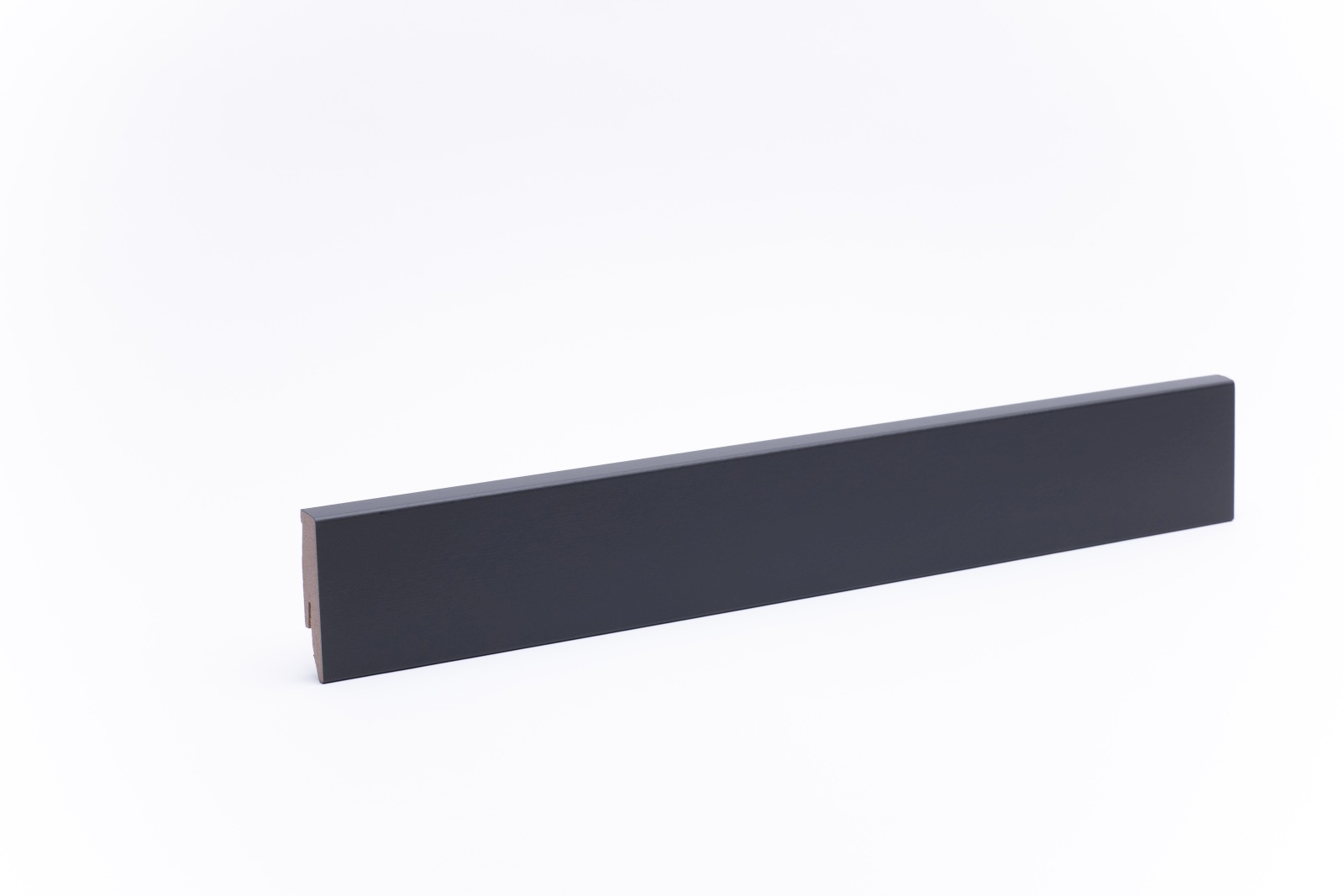 Unsere grau/anthrazite Dekor-Sockelleiste 60mm, besticht durch ihr schlichtes und zeitloses Design.