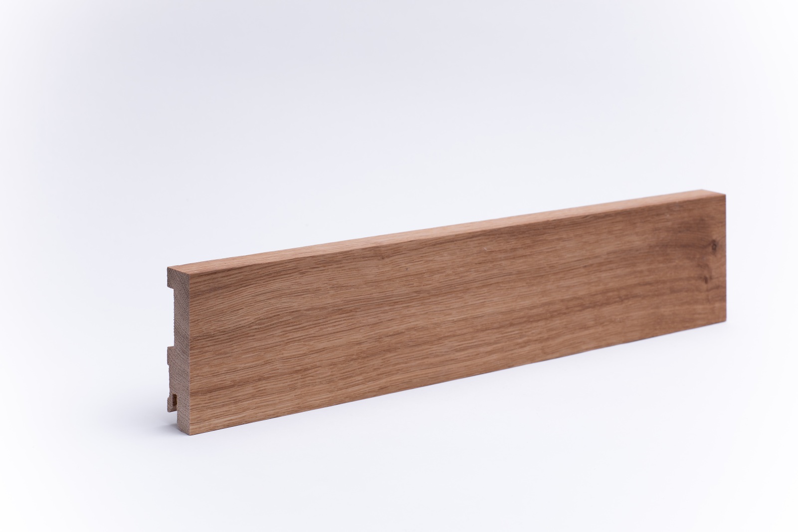 Unsere Sockelleisten sind aus einem Stück massivem Eichenholz, wie der Stamm gewachsen ist, gefertigt. Dadurch entsteht ein sehr natürliches und harmonisches Bild in der Holz- und Farbstruktur, für eine angenehme Raumwirkung.