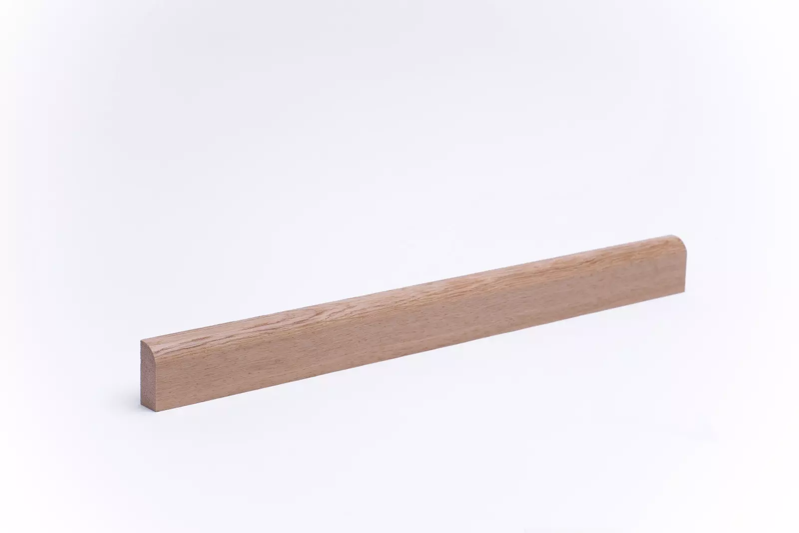 30m skirting board made of genuine untreated oak wood with a rounded front edge in the dimensions 35 mm x 15 mm x 1.000 - 2.800 mm. The profiles are produced from one piece of wood from the trunk and give rise to a harmonious finish in wood and colour structure.