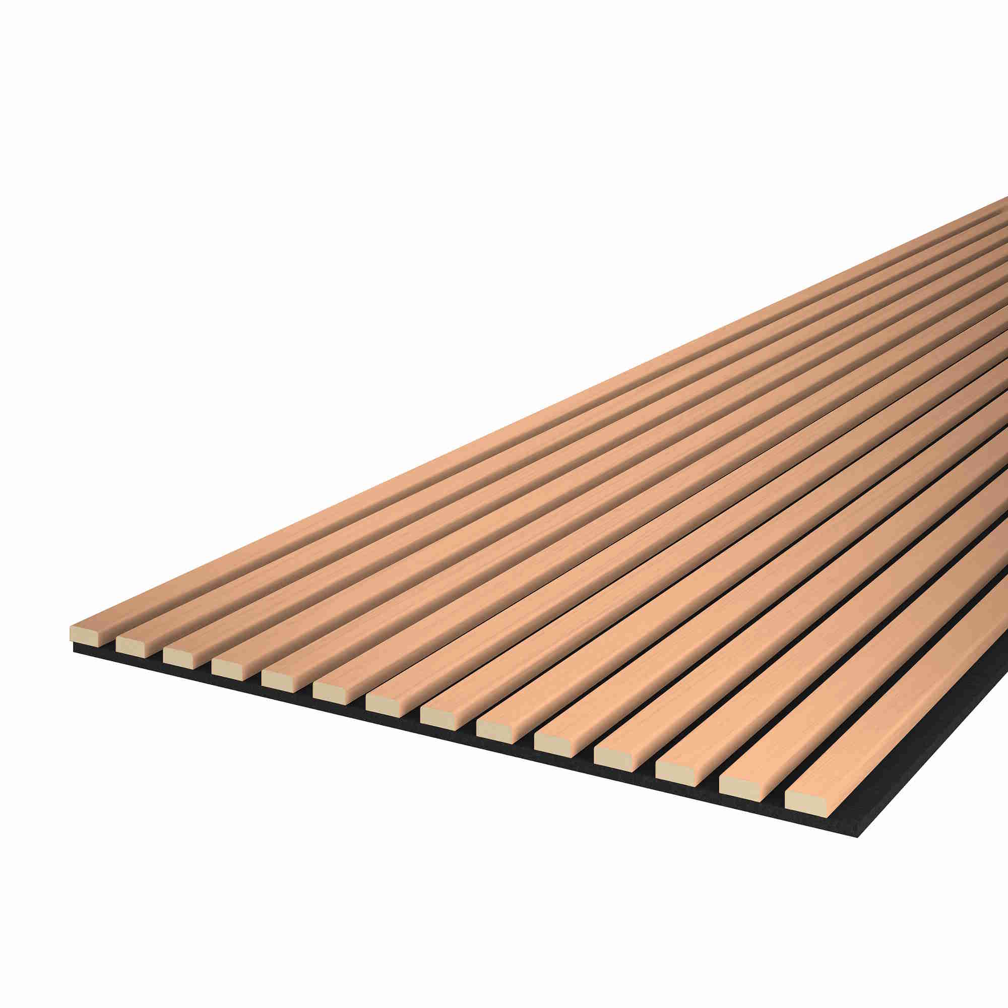 - Dimensions: 20 mm x 600 x 2400 Felt mat in black, 8 mm thick12 mm thick slats made of MDF with high-quality decorative laminationSpacing between slats: 16 mmWall panels completely pre-assembled