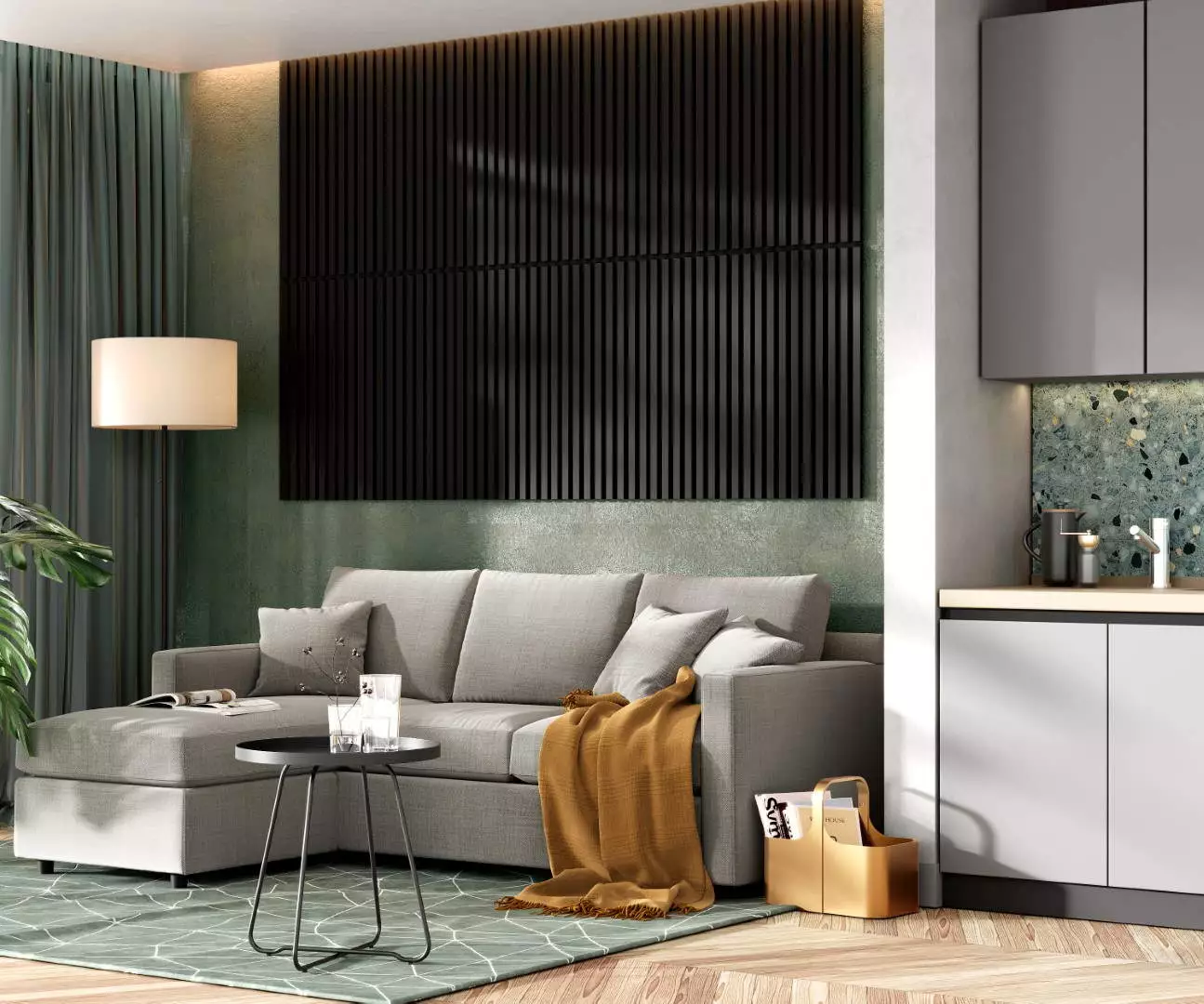 - MDF slats with high-quality concrete finish