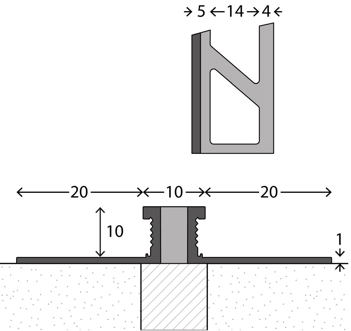 The expansion joint profile is used for all floor coverings to bridge expansion and construction movement joints. The profile is laid out so that it lies exactly over the joint in the subfloor so that the floor joint can continue to move.