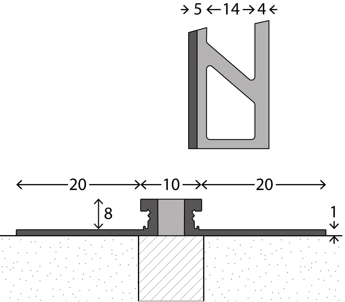 The expansion joint profile is used for all floor coverings to bridge expansion and construction movement joints. The profile is laid out so that it lies exactly over the joint in the subfloor so that the floor joint can continue to move.
