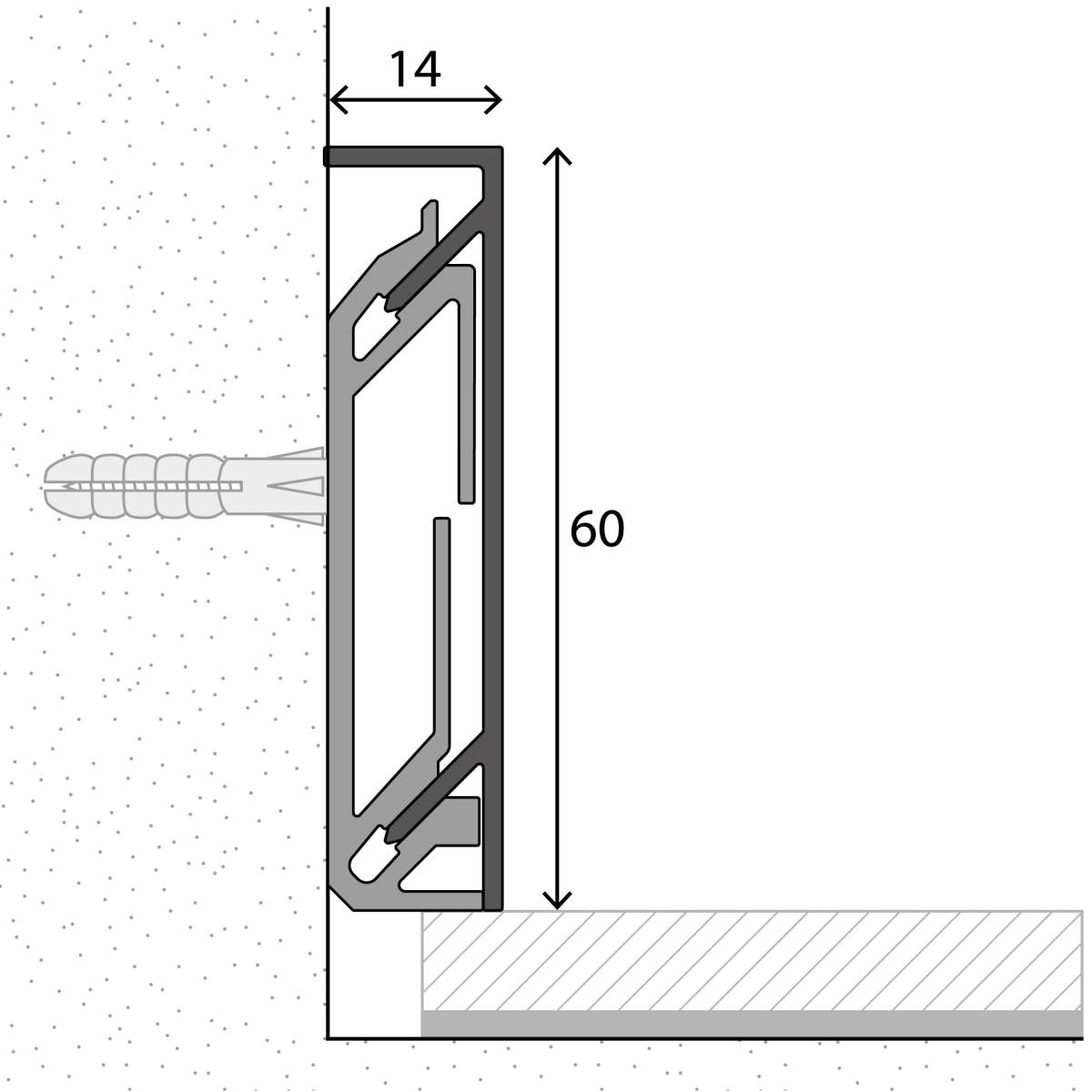 "Cultus45" aluminum skirting board 60 x 14 mm