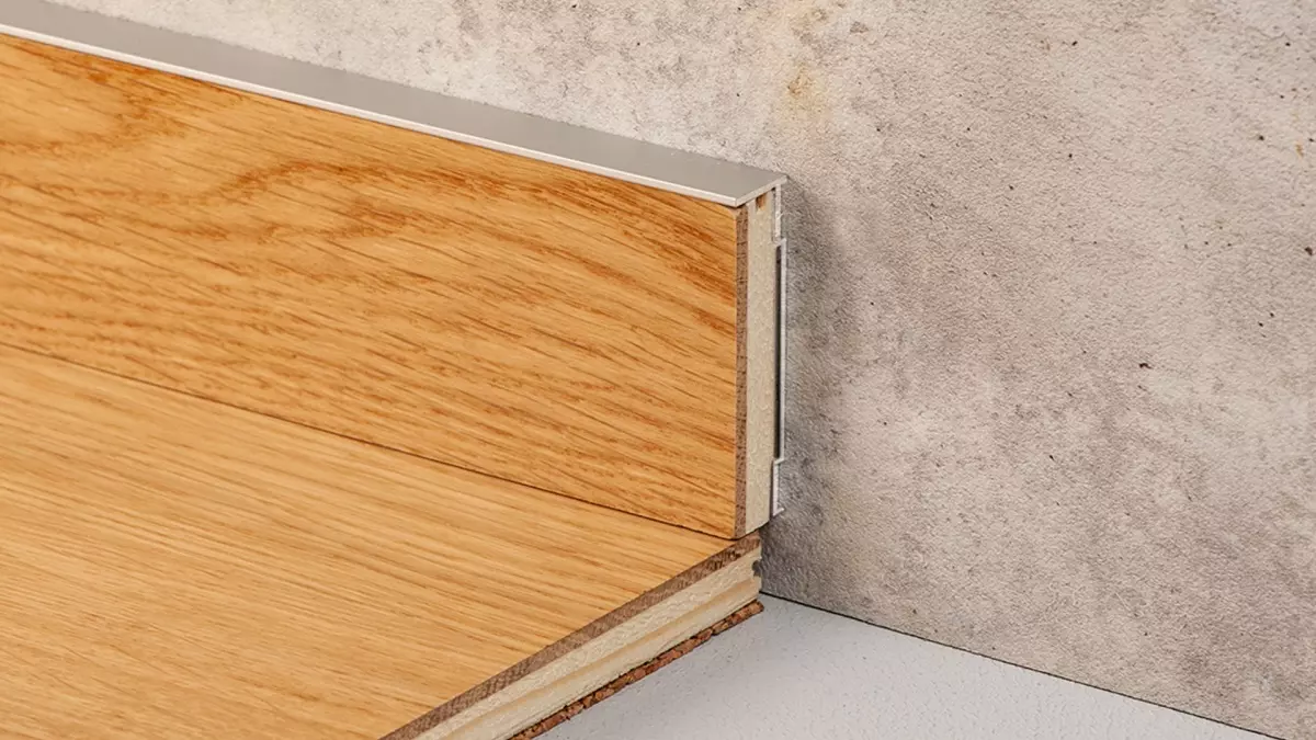 skirting board made on aluminum for an elegant and attractive-looking transition between wall and floor. Especially suitable for vinyl floor.