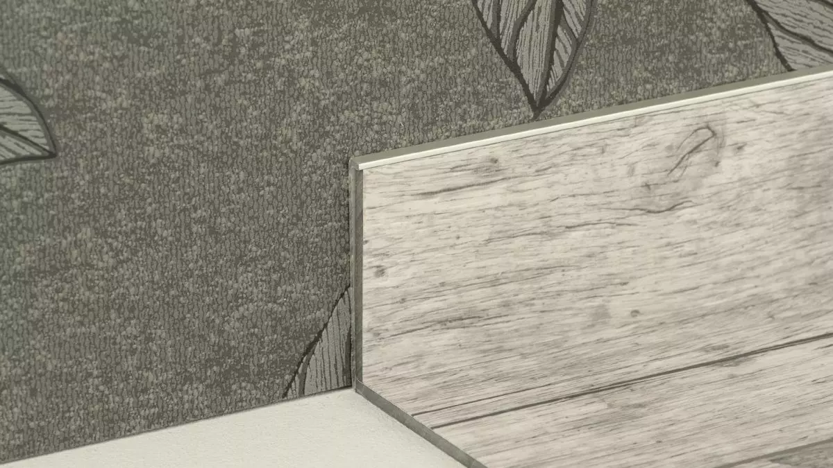 The strip is close to the wall and convinces with a flawless aluminum surface. Mounted with the short leg upwards, they are used to make discreet adhesive strips for floor coverings with a thickness of up to 3.5 mm. This means that skirting boards can be made from the processed floor covering with an identical decor and excess material can be used efficiently.