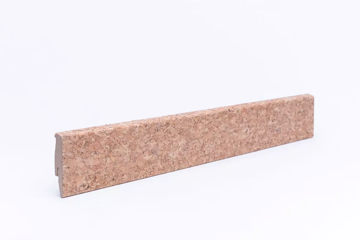 The baseboards have a MDF core (MDF - medium-density fibreboard). This gives the skirting boards sufficient flexibility and stability . Thanks to the real cork veneer in its raw state, the skirting boards can be customized according to your ideas and coated to match your cork floor.