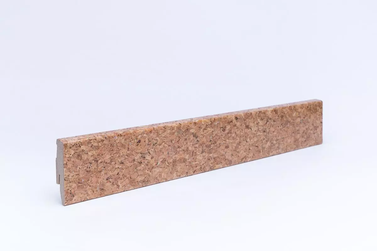 Our 60mm skirting board with real cork veneer, coarsely lacquered, in a curved and modern design, beautifies every room.