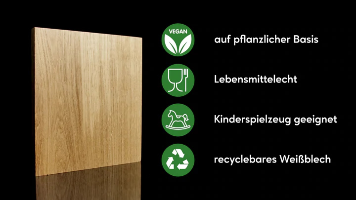 The "OLI-NATURA HS Hard Wax Oil" is based on modified vegetable oils and waxes. It offers the highest Giscode rating Ö10+, because it is formulated without solvents and free of biocides,cobalt-containing compounds as well as oximes. That is why our "OLI-NATURA HS Hard Wax Oil" is so healthy for the home and suitable for children's toys. It is also LFGB-certified (food safe). The cured material is saliva- and perspiration-proof and thus harmless to humans, animals and plants as well as a building product approved by the German Institute for Building Technology (DIBt).