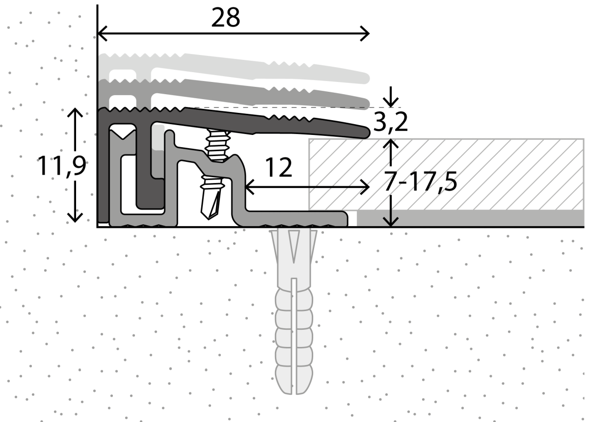 PS 400 profiles impress with their time-saving and simple installation. First, the base profile is screwed to the subfloor and the floor covering is laid. A sufficient expansion joint must be taken into account. The top profiles adapt seamlessly to the floor covering. Even with large differences in level, they automatically seal tightly on both sides.
