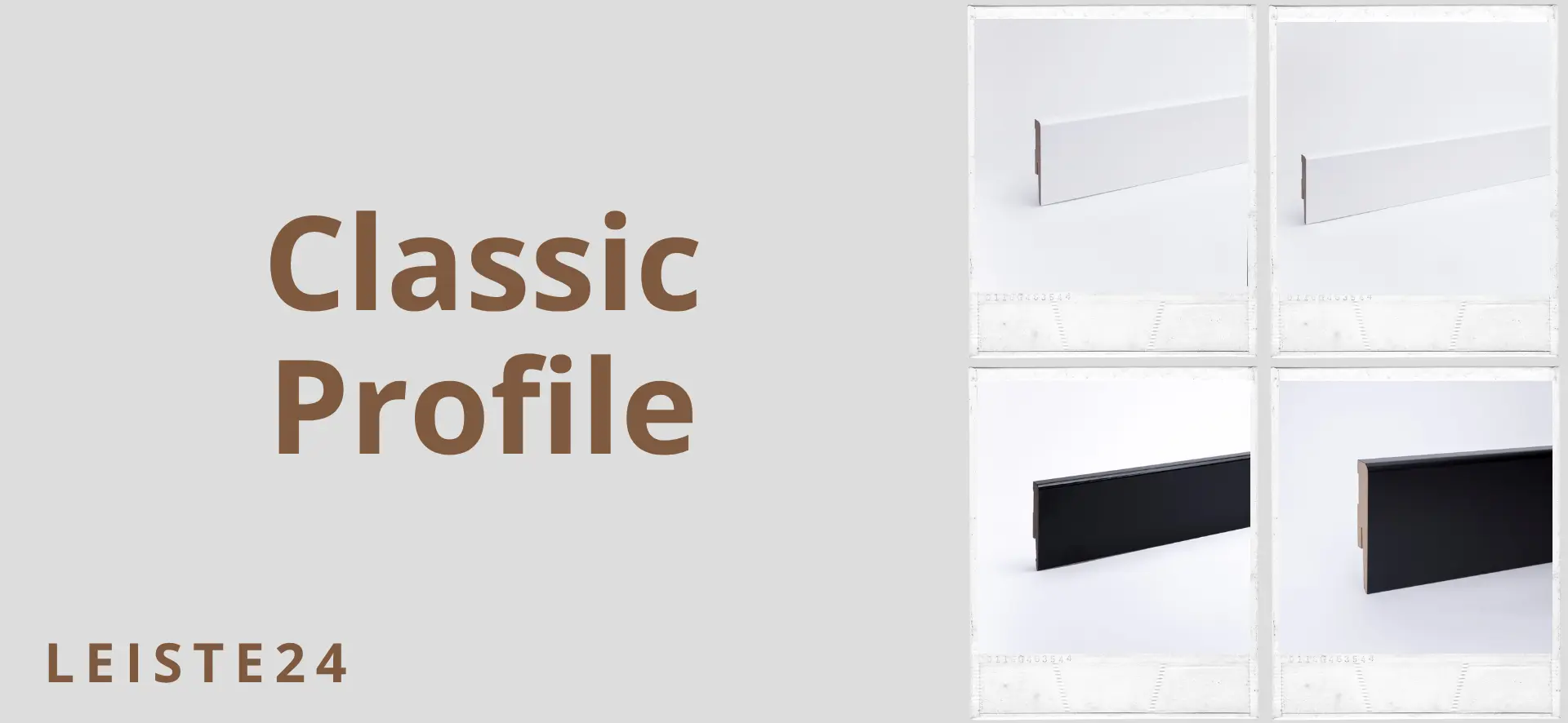 The skirting boards in the Weimar profile can be easily and stably mounted on the wall and offer a long-lasting solution for residential and business premises. Whether as a stylish detail or a functional addition - these skirting boards impress with their timeless look and quality. For an uncomplicated assembly, we offer matching clips separately. The price in our shop refers to a single bar.