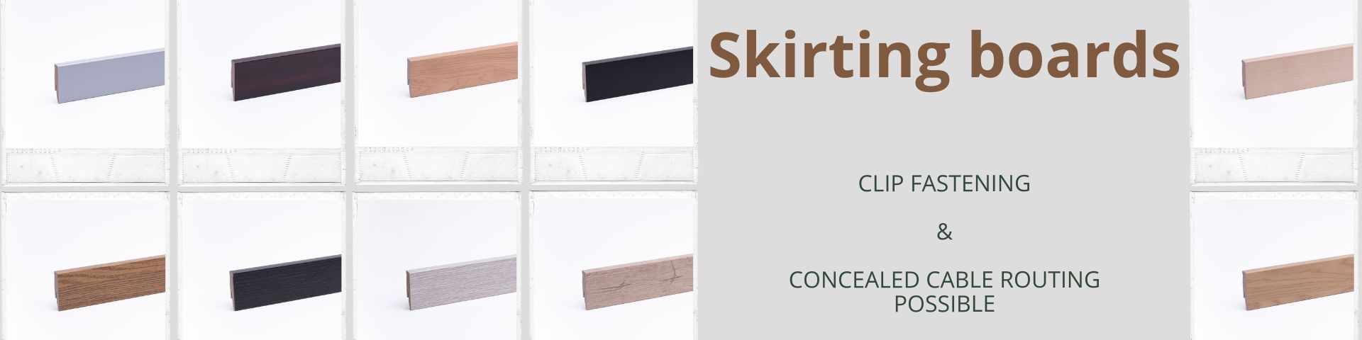 In addition, the skirting boards have a clip groove on the back. By Clipsystem you can install the skirting boards 60 mm quickly and easily, without visible screw holes. This system is also suitable for concealed cable routing behind the skirting board.