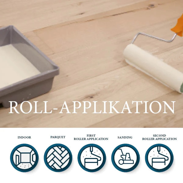 Application: For the first oil application, apply oil evenly and generously with a short-pile microfibre roller. Work quickly because of the rapid drying and avoid rolling into oil that has already dried. Allow the surface to dry for at least 2-3 hours. Then sand the dried oil application intermediately with grit P220-P280. A P220 sanding sponge is best for this - Dust the surface well. Apply the second oil coat evenly with a microfibre roller and allow to dry. During application, a colour deepening occurs in the wet phase, which disappears after complete drying.
