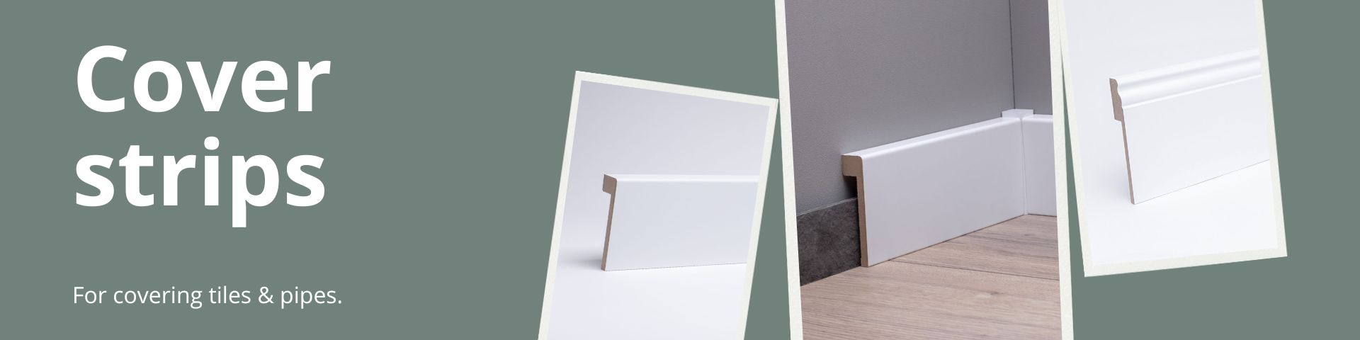 Particularly when replacing flooring, old skirting boards or exposed pipes often remain visible, disrupting the overall appearance. This is where our cover strips come into play: they are easy to install and conceal unsightly elements without the need for extensive renovations. Whether in MDF or plastic, our cover strips are available in a range of materials and designs, offering the perfect solution for any setting.