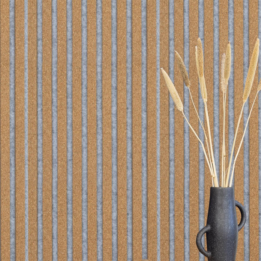 .Our universally applicable Wall and ceiling panelling is a grey mat made of felt to which MDF strips sheathed in real cork veneer are attached. Whether horizontally, vertically or diagonally, you will be impressed by the extraordinary look. You can even attach the slatted panelling to the ceiling. In addition to the great look, you can also use the felt mat to reduce the reduce sound in your room. You receive the panels in one piece, so that you can install them mount them immediately. When it comes to installation, your There are no limits to your creativity.