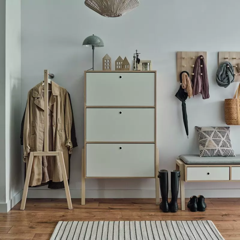 The installation of the Espumo skirting board is particularly quick and easy, as it is only attached to the wall with mounting adhesive. Thanks to a hidden cable guide, it is also possible to make annoying cables disappear.