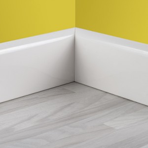 Our Idea-Flex skirting 80mm in white high gloss is a high-quality all-plastic skirting made of PVC. The combination of the simple rounded design and the high-gloss finish makes the Idea flex skirting a real eye-catcher. It has many advantages - it is light, very stable, extremely hard and impact-resistant. Thanks to the UV-stable coating, you can enjoy a white skirting board even after a long time. The Idea flex strip can also be installed in wet areas as it is 100% waterproof.