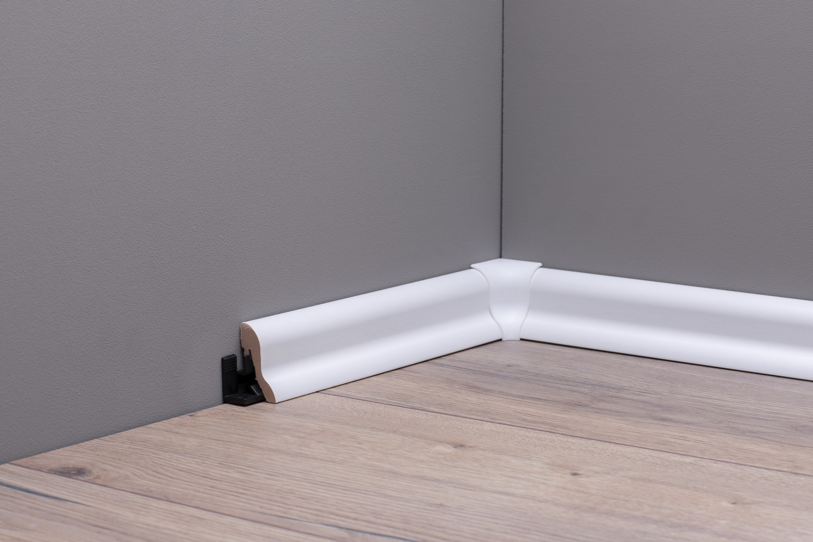 The baseboards have an MDF core (MDF medium-density fibreboard). This gives the skirting boards sufficient flexibility and stability.