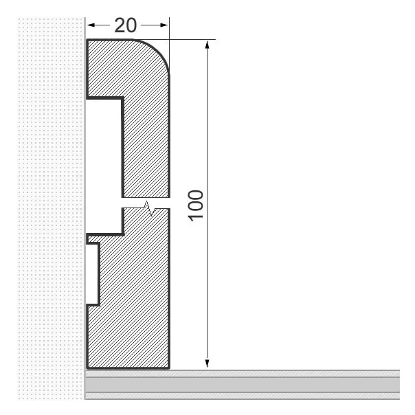 Skirting board made of genuine wood in the dimensions 100 mm x 20mm x 2.400 mm. The profiles are produced from one piece of wood from the trunk and give rise to a harmonious finish in wood and colour structure.