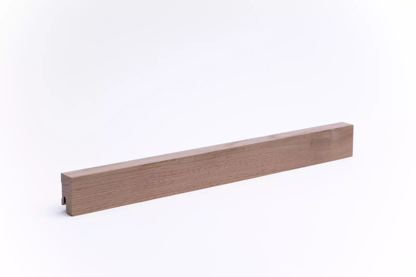 Plinthes en bois massiv carré dans les dimensions 40 mm x 20 mm x 1.000 - 2.400 mm. Les plinthes sont faites d'une pièce, avec la structure naturelle du tronc d'arbre. Ceci crée une image harmonieuse dans la structure de la couleur et du bois.