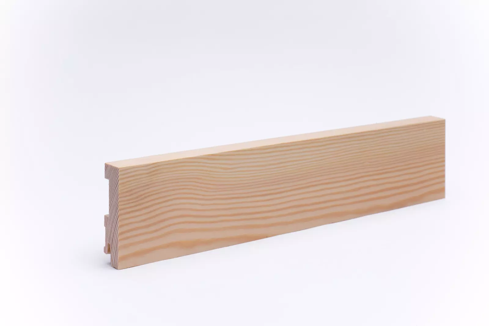 Plinthes en bois massiv carré dans les dimensions 80 mm x 20 mm x 1.000 - 2.400 mm. Les plinthes sont faites d'une pièce, avec la structure naturelle du tronc d'arbre. Ceci crée une image harmonieuse dans la structure de la couleur et du bois.