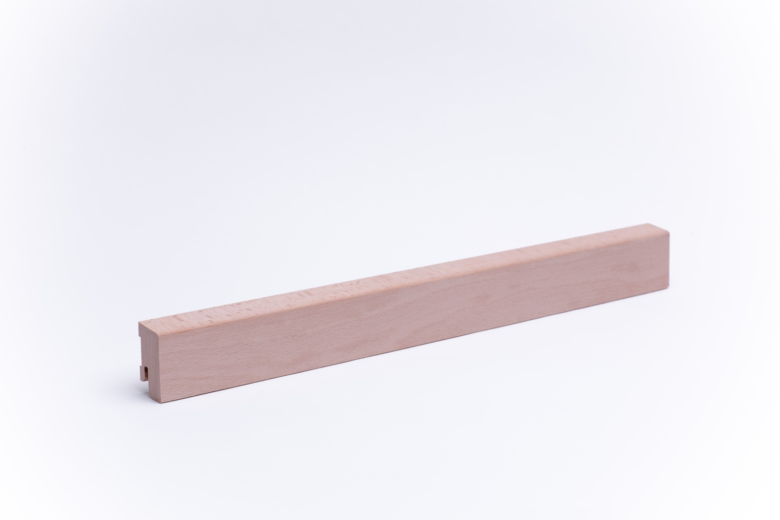 Skirting board made of genuine untreated beech wood with chamfered front edge in the dimensions 40mm x 20mm x 1.000 - 2.400 mm. The profiles are produced from one piece of wood from the trunk and give rise to a harmonious finish in wood and colour structure.
