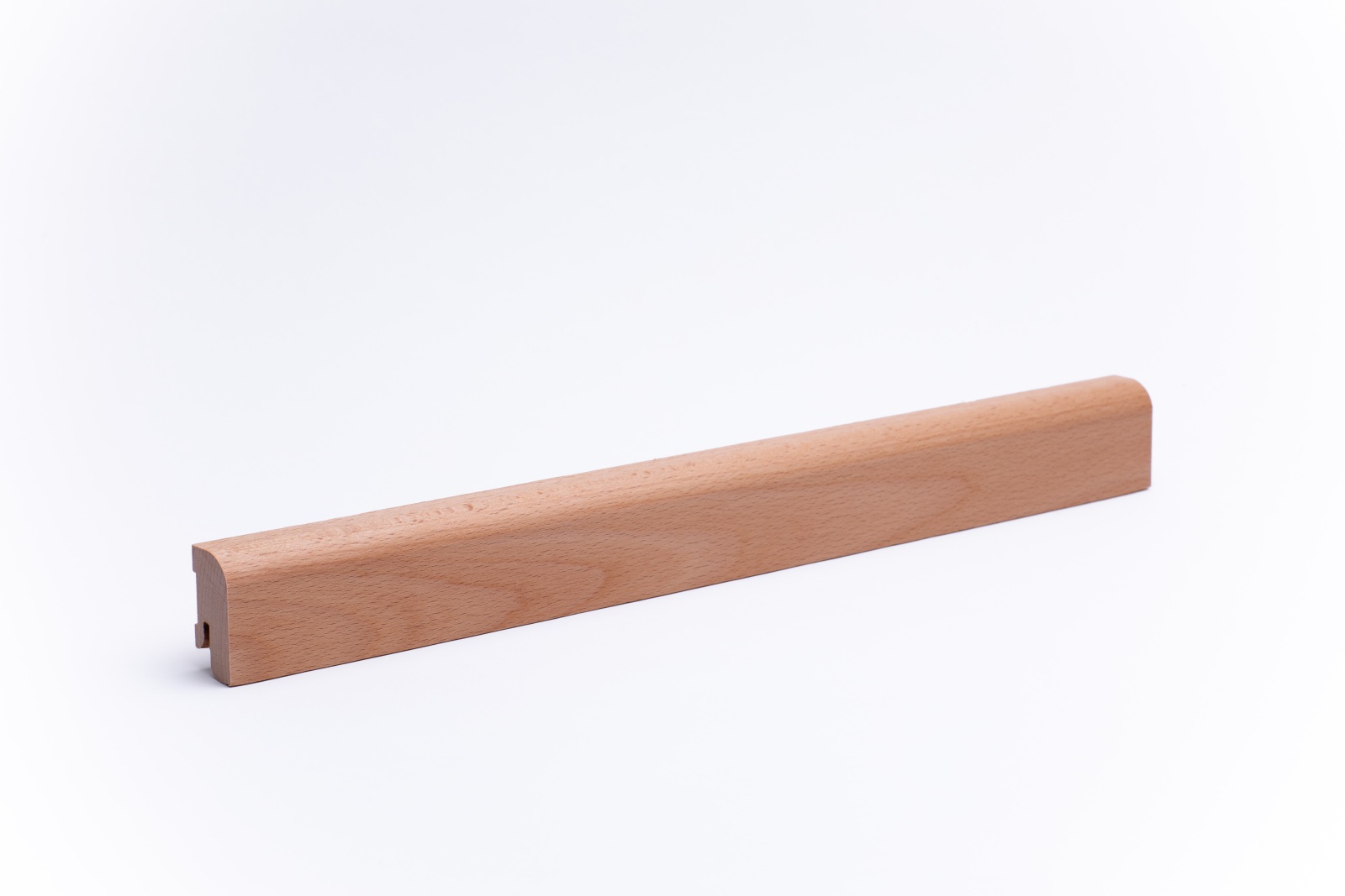 Skirting board made of genuine wood with a rounded front edge in the dimensions 40mm x 20mm x 1.000 - 2.400 mm. The profiles are produced from one piece of wood from the trunk and give rise to a harmonious finish in wood and colour structure.