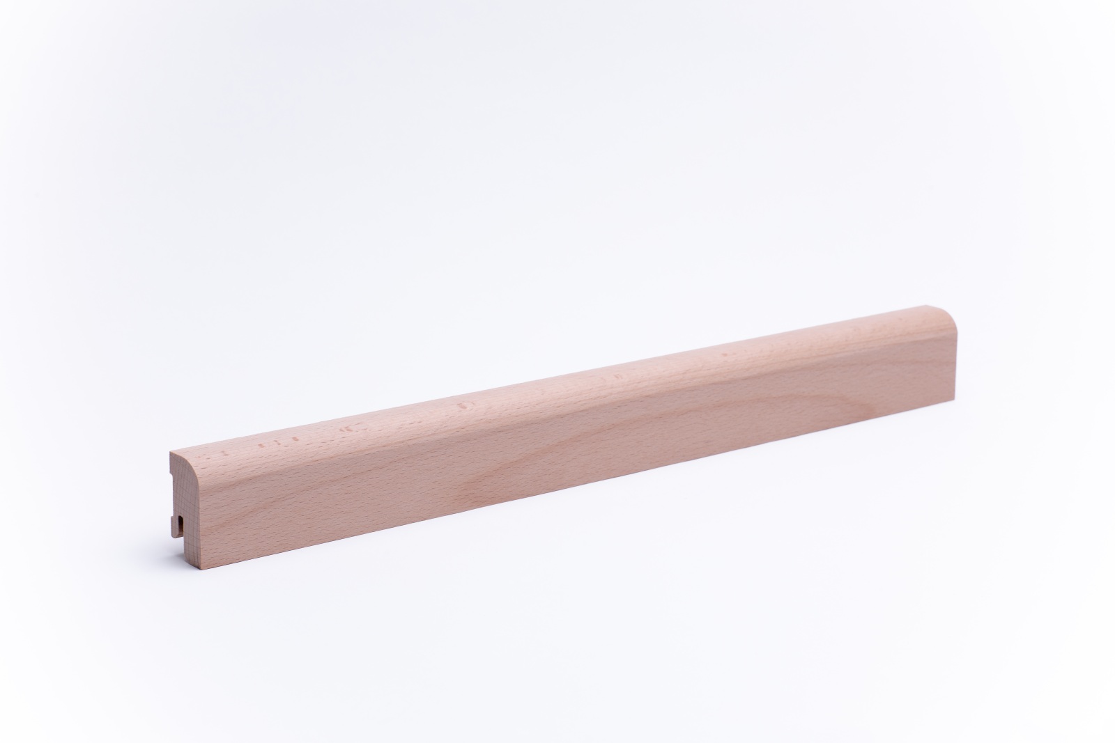 Skirting board made of genuine wood with a rounded front edge in the dimensions 40mm x 20mm x 1.000 - 2.400 mm. The profiles are produced from one piece of wood from the trunk and give rise to a harmonious finish in wood and colour structure.