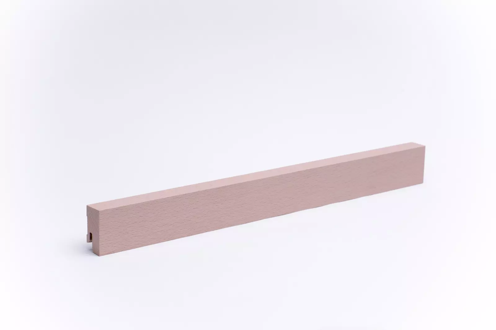 40 mm high rectangular skirting board made of solid beech wood with a lacquered surface. The skirting boards are made from one piece, as the trunk has grown. Knots are possible.