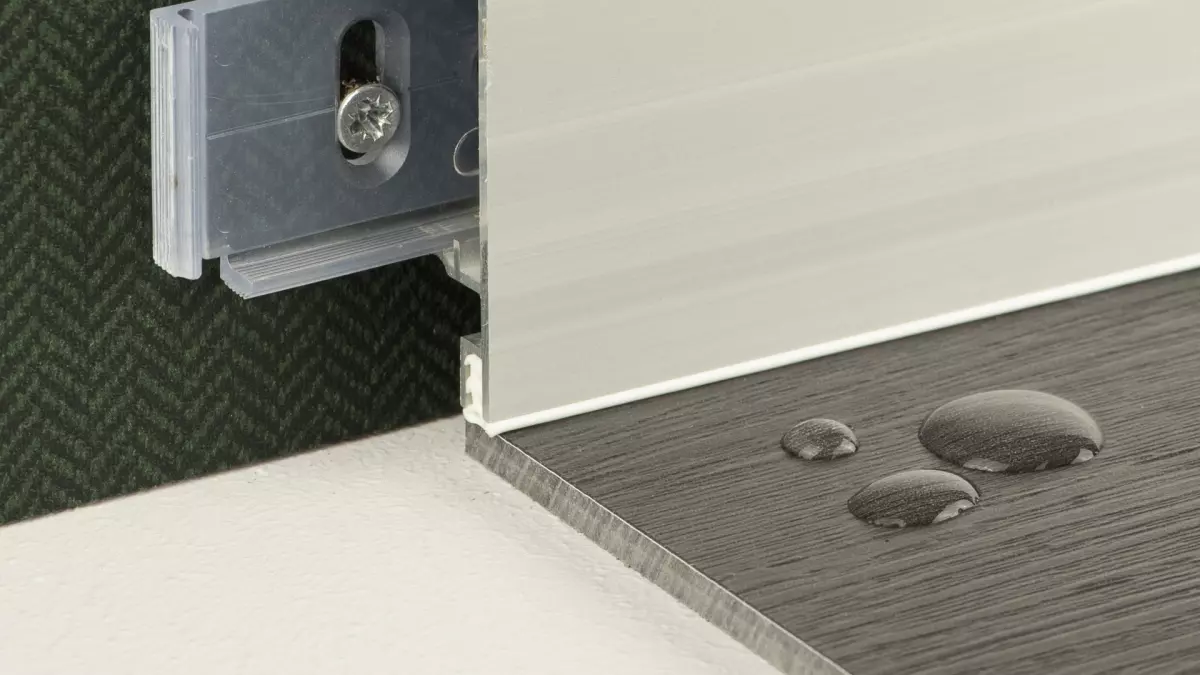 The hose seal can be inserted into the grooves of our aluminum clip baseboards and guarantee a flush finish with simultaneous protection against moisture.