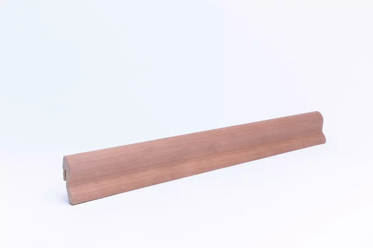 Durch das Echtholzfurnier in Kirsche, erhalten die Sockelleisten eine natürliche Optik und Holzstruktur, sowie eine kratzfeste Oberfläche. Zudem sind unsere Leisten leichter und flexibler als Furnier-Sockelleisten mit Holzkern und passen sich, auch bei leichten Unebenheiten, an Wand und Boden sehr gut an.