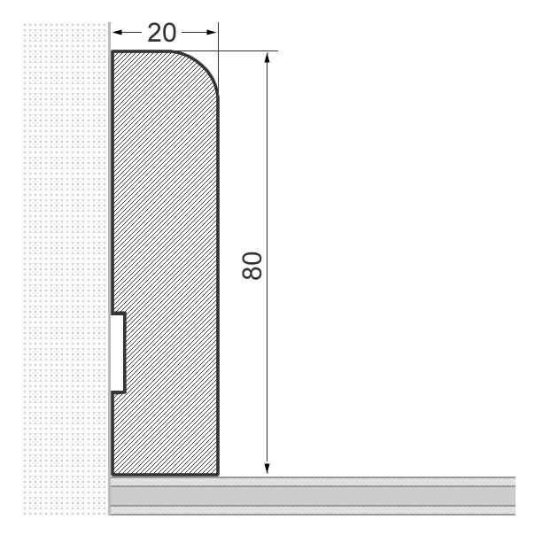 - Abmessung: 80 x 20 x 2.400 mm