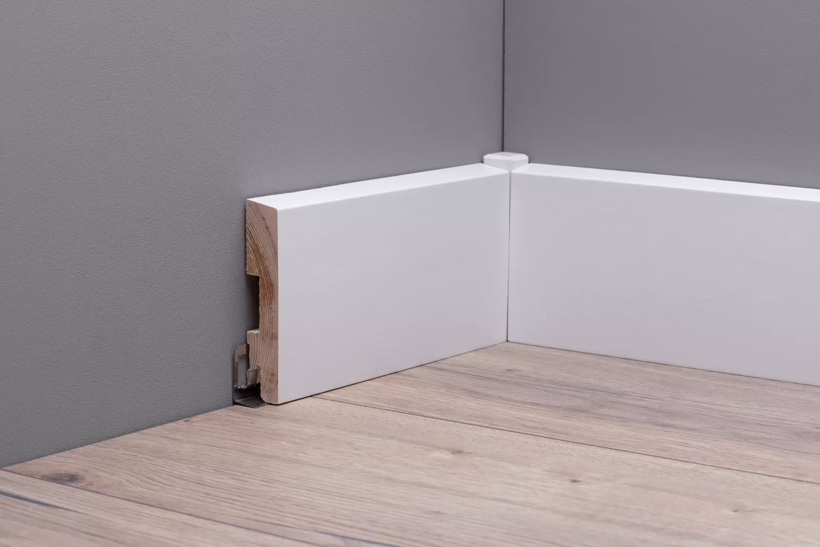 Die Sockelleisten sind aus hochwertigem Kiefern-Massivholz gefertigt und dadurch robust und langlebig. Die Oberfläche ist im modernen Farbton RAL9010 deckend weiß lackiert. Die hochwertige Lackierung schützt das Holz zudem vor äußeren Einflüssen und erzeugt eine wundervolle Optik mit einzigartiger Holzmaserung.