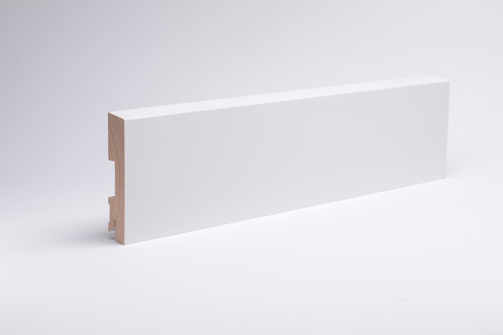 Massivholz-Sockelleiste abgeschrägt 100 mm - Weiß RAL 9010
