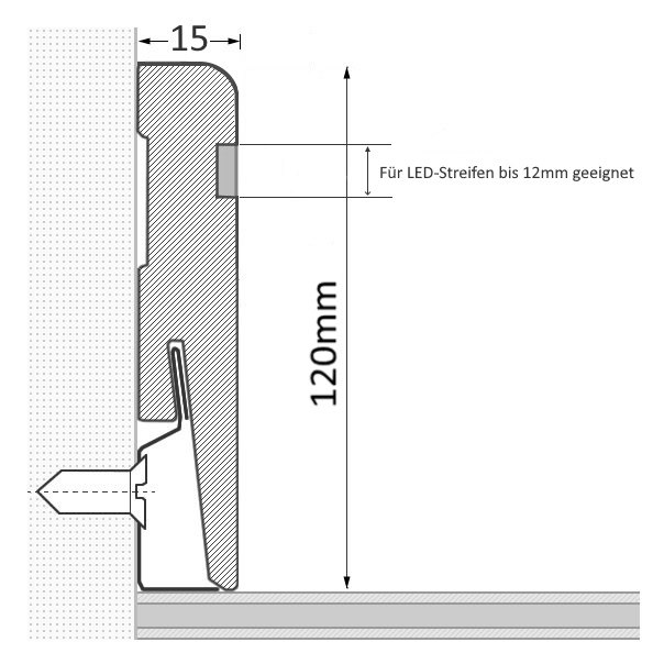 Die Sockelleisten im Weimarer Profil lassen sich einfach und stabil an der Wand montieren und bieten eine langlebige Lösung für Wohn- und Geschäftsräume. Ob als stilvolles Detail oder funktionale Ergänzung - diese Leisten überzeugen durch ihre zeitlose Optik und Qualität. Für eine unkomplizierte Montage bieten wir passende Clips separat an. Der Preis in unserem Shop bezieht sich auf eine einzelne Leiste.